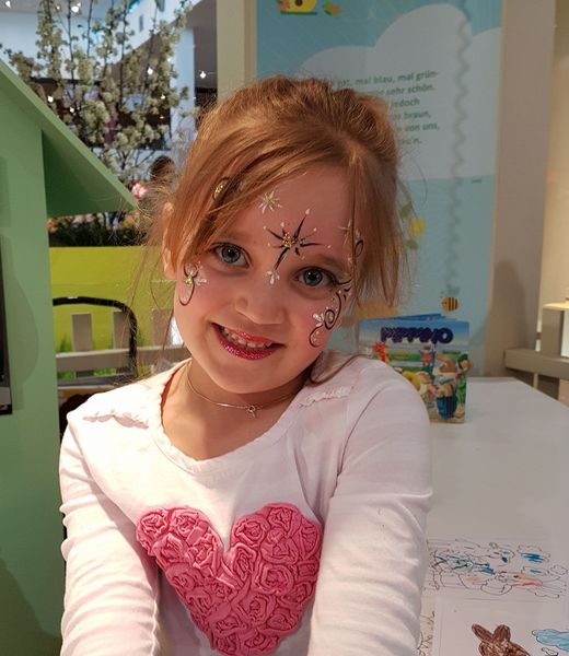 Schmetterling und auch verschiedene Fantasiemotive. Kurz gesagt: alles ist möglich beim Kinderschminken.